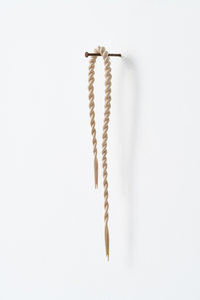 Yamanishi’s works often centre on motifs of incomplete or absent entities, such as fabrics, strings, and shells. Utilising wood as her primary material, she incorporates a sense of absence into her pieces, directing viewers’ attention to surrounding phenomena like light, shadow, gravity, and air.